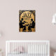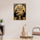 This stylized painting is a graphic depiction of a jazz concert. Two musicians, rendered in black silhouettes, are seated and performing, one playing a trumpet and the other a saxophone. The background is a large, textured gold circle with the words "JAZZ CONCERT" in bold black letters. The artwork has a minimalist yet elegant aesthetic, combining the classic feel of a jazz performance with a modern, decorative style.