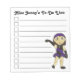 List-style to do list note pad design features an original marker illustration of a girl jazz dancer in a black and purple recital costume. Just personalize with the name of your favourite dancer or dance teacher.