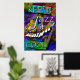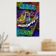 Keepin' it Cool Jazz Poster Print featuring an electric guitar, Saxophone and distorted keyboard on a psychedelic background.