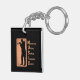 Black keychain with roughly drawn trumpet player. Peachy beige highlights and lettering that spells MUSIC vertically. A great gift idea for the musicians and music lovers in your life! Personalize text if you wish.