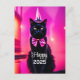 Join us for a cheerful New Year's celebration with a casual Postcard   showcasing lively fantasy artwork! A stylish black cat with a pointed hat and purple bow tie is sporting a jazzy look, accompanied by the text "Happy 2025" and a funny quote on the other side: "Feline good about the year ahead—let's party!"