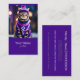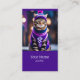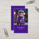 A business card featuring bright fantasy art. A jazzy tabby cat is dressed in a purple sweater and cap.Personalize it with your information right now... Canva AI and Alma Wad, a human designer, collaborated on the design.