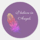Je crois en Anges, dessin de plumes, autocollant violet . Facile à personnaliser votre texte et votre arrière - plan.