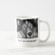 Plan rapproché d'un visage de sheltie de sommeil sur une tasse de café avec "moi ne fais pas des matins"
