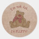 L'ours en peluche mignon et bouché dit : "Je ne suis pas gros, je suis moelleux ! L'Arrière - plan est un faux tissu de lin.