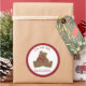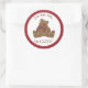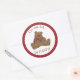 L'ours en peluche mignon et bouché dit : "Je ne suis pas gros, je suis moelleux ! Il porte un arc rouge avec des pois bronzés. Le bord de l'autocollant est fait en rouge avec des pois bronzés aussi.