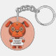 Un porte - clé compact et adorable avec un chien robot triste dans une situation humoristique. Le chien métallique futuriste est montré assis avec une expression de faux, tenant une petite pancarte qui dit : "Je ne suis pas un robot", alors qu'il lutte avec une invite CAPTCHA d'un site web.