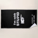 Je suis avec la serviette de plage drôle stupide pour des couples. Serviettes de plage humoristiques avec la citation d'amusement et le signe de pointage. Idée personnalisée de cadeau pour lui et elle. Idées uniques de cadeau pour les hommes et des femmes. De grande taille pour la plage ou la piscine. Créez vos propres serviettes d'extra large pour les ménages mariés, les meilleurs amis, le retraité, la personne retraitée, le retraité, la famille, le mari et l'épouse, travailleur de Co, collègue, patron, employé, maman, papa, soeur, frère, tante, oncle, grand-papa, grand-maman, directeur, entraîneur, employé de bureau, associé, fils, fille, vacances, couple, l'épousez nouvellement, des nouveaux mariés, des jeunes mariés, M. et Mme, modèle moderne de typographie d'amusement des jeunes-mariés etc. avec la main et indication par les doigts entre eux. Personnalisez avec son nom au fond. Couleur noire et blanche ou faite sur commande d'arrière - plan. Conception de plaisanterie.