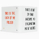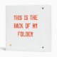 L'avant indique, "qu'est la droite que je suis celui impressionnant. Aucun point d'exclamation requis." et le dos indique, "c'est le dos de mon dossier." Toutes les lettres sont dans des casquettes. L'extérieur du dossier est blanc et l'intérieur est noir.