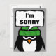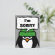 Je suis désolé pour la carte postale de message | humoriste dessin animé de pingouins. Joli dessin d'oiseau animal avec bulle vocale. Cartes comiques pour excuses.