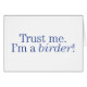 Le Faites-moi confiance. Je suis un Birder que la conception est grande pour l'observateur d'oiseau ou l'amant d'oiseau dans votre vie ! Les oiseaux et les fleurs est l'oiseau #1 et la magazine de jardin en Amérique du Nord. Nous nous glorifions en célébrant la "beauté dans votre propre jardin" couverture un éventail de sujets tels que l'observation d'oiseau, attirant des colibris, les volières de construction, faisant du jardinage pour des papillons, alimentant des oiseaux pour moins, le légume croissant, contes des expériences birding de lecteurs', plus un sort entier de plus. Nous nous rendons compte que les jardiniers et les birders partagent souvent les mêmes intérêts. Il fait sens-si vous voulez attirer des oiseaux à votre jardin, faisant du jardinage et aménageante en parc sont une grande manière de le faire. Et quand un jardin en fleur, ajoutant le mouvement des oiseaux colorés et de leurs chansons gaies fait un jardin venir vivant. Visite www.birdsandblooms.com/zazzle pour voir plus !