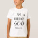Le t-shirt de ce garçon a en noir écrit "JE SUIS UN ENFANT DE DIEU" suivi par Galates 3:26.