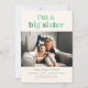 Cette jolie grande soeur/faire-part de naissance comporte les mots "Je suis une grande soeur" dans les tons verts en haut avec de l'espace pour une seule photo ainsi que des informations sur votre arrivée récente. Le dos de la carte a une couleur coordonnant le motif à bandes vertes.