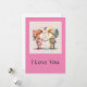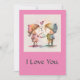J'ai une carte de Saint Valentin qui dit : Je t'aime. L'image montre un garçon et une fille qui se tiennent la main avec le coeur entre eux. Le côté arrière est vide pour l'écriture.