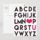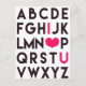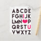 NewParkLane - Carte postale mignonne, avec l'alphabet en typographie moderne noire et les lettres pour 'Je t'aime' en rose chaud avec un grand cœur.
