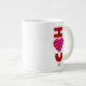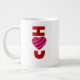 Vous pouvez admirer mon dessin de la Saint-Valentin et mon dessin romantique que j'appelle, "I Love You", d'un coeur rayé rouge et rose, ajouté à cette tasse Jumbo.