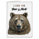 Grande carte avec un gros ours brun qui dit, Je t'aime, Ours-y-Many. Carte de fidélité pour une occasion romantique, comme la Saint Valentin ou un Anniversaire ou juste pour dire, je vous aime.