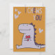 Jolie et drôle carte de la Saint-Valentin pour les enfants avec une illustration d'un T-Rex de dessin animé violet tenant un cœur rouge sur fond jaune foncé avec les mots "Je t'ai choisi" un excellent cadeau pour les filles et les garçons.
