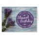 Dites joyeux anniversaire avec cette carte unique, avec le message "Souhaitez-vous un anniversaire béni." Le design est accentué avec des ornements floraux et apparaît sur lavande floral et arrière - plan de texture bois.