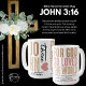 Embrassez la sagesse intemporelle de Jean 3:16 avec chaque gorgée. Cette magnifique tasse en céramique présente un design unique mettant en valeur le verset bien-aimé de la Bible, entouré de délicats accents floraux. ・ Disponible en 11 onces ou 15 onces ・ Construction céramique robuste et durable ・ Cadre design floral élégant du verset iconique Cette tasse est un beau rappel de l’amour profond de Dieu et de la promesse de la vie éternelle. Que vous débutiez votre journée avec une tasse de café chaud ou en dégustant un thé du soir, cette tasse soulèvera votre esprit et inspirera réflexion sur le message transformateur de Jean 3:16.