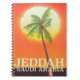 Jeddah Saudi Arabia Vacation poster of a setting sun and a desert palm tree.