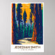 Jedediah Smith Redwoods State Park vector artwork design. The park is for preserving old-growth redwoods along the Smith River.