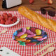 Great accent for an outdoor summer party. Bright colors, vibrant floral design