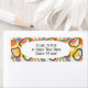 These return address labels have a mid-century modern design of “deformed” circles in retro colours overlapping each other and repeating in the design.