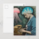 Jellyfish and a Typewriter Surreal Woman Postcard