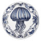 coastal sicilian,italian hand painted pattern,mediterranean nautical portuguese,blue and white marine life,summer ocean sea jellyfish animal,beach house portugal,authentic classic traditional painting,vintage underwater antique coast,folk art,monochrome decorative jelly fish