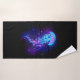 Grande méduse bleue, artistiquement dessinée, brillante, brillante, avec de longues tentacules sur arrière - plan noir avec bioluminescence violette. Méduse brillante.