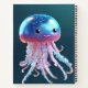 This jellyfish notbook design features a mesmerizing underwater scene with a vibrant, glowing jellyfish as the focal point. The jellyfish's tentacles gracefully flow across the fabric, creating a sense of movement. The intricate details and luminescent colours of the jellyfish give the design a magical, otherworldly feel, perfect for ocean lovers or anyone looking for a unique, nature-inspired piece. The blend of soft blues, purples, and hints of neon creates a striking contrast against a dark background, making the jellyfish appear as if it’s glowing in the deep sea.