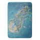 painting of a white and yellow jellyfish in blue water with a few bubbles swimming in blue water