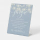 Jenga Wedding Guestbook String Lights Dusty Blue Pedestal Sign