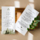 Ce programme de mariage comprend des pins aquarellés rustiques et une police manuscrite bohème. Modifiez facilement tous les libellés et les polices pour correspondre au style de votre événement.