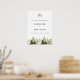 This wedding welcome sign features rustic watercolor pines and a bohemian handwritten font.