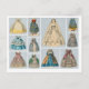This postcard features a collage of Jenny Lind paper doll dresses, including a wedding gown and several ball gowns.