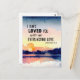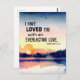 Inspirational quote scripture postcard depicts a watercolor painting with a beautiful orange, yellow and pink sunset over the water. It features an encouraging Bible Verse Jeremiah 31:3, "I have loved you with an everlasting love." The greeting, prayer can be personalized or deleted for a hand written message._