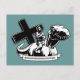 Ink drawing of Jesus riding upon the T-Rex behemoth, with a cross and, "Riiiiiiiiiiiiiiight." in a scroll banner. B/W, t-shirts, sweats, cards, gifts.