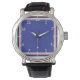 You'll love the simplicity of this blue, red, grey, and white watch face.