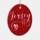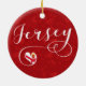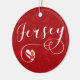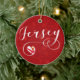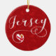 Jersey flag in a heart, in scripted font holiday ornament / X-mas decoration.