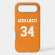 Add a name and number(s) to personalize this custom orange and white sports jersey inspired phone case. It is an excellent gift for a sports fan or athlete. The options to change the colour and font sizes are available.