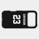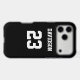 Ajoutez un nom et un numéro pour personnaliser cette étui téléphonique personnalisée inspirée du maillot de sport noir et blanc. C'est un excellent cadeau pour un supporter sportif ou un athlète. Les options pour changer la couleur et la taille de police sont disponibles.