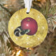 Représentant Adam et le Jardin d'Eden, l'arrière - plan d'or de cet ornement met en valeur une pomme rouge et un serpent noir et blanc. Reverse est doré avec un design de flocon de neige géométrique blanc.