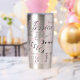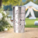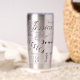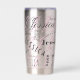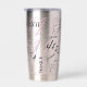 A custom name tumbler showcasing "Jessica" in multiple styles over a background script initial "J". The black, pink, and silver colours offer a timeless look, ensuring your drink remains yours with the prominently displayed name.
