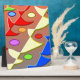 Jessica is a design contrasting angles and curves. The coloured shapes are placed on a graduating background. This image is available on a variety of other products, just click the link below the photo near 'About this Design'.