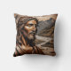 A serene depiction of Jesus set against majestic mountains and a flowing river, capturing a moment of reflection in a tranquil landscape.