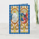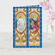 Wish family and friends a "Happy Easter" with this handsome religious card simulating stained glass in rich aqua blues, warm golden yellows, bright spring greens, and bronze. Done in the Liberty Style, the British version of Art Nouveau, two long rectangular panels with figured scenes arranged side by side represent Jesus appearing in the Upper Room on Easter evening on the left and the astounded Apostles on the right in oval frames surrounded with stylized greenery. + Inside: A large panel with stylized Easter lilies. Image Credit (RT 02): Antique images from an embossed postcard in chromolithography entitled A Joyful Easter, Easter Hymns Series, No. 714, originally published by Raphael Tuck & Sons, London, England, and printed in Saxony, Germany, 1912, from the designer’s private collection.