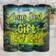 This vibrant graphic enthusiastically declares "Jesus Best Gift EVER" in bold, glowing yellow and lime green typography. An arrow with a heart motif extends from "Jesus". The uplifting message is set against a richly coloured, stylized landscape featuring layered evergreen trees, majestic mountains, and a tranquil river, creating a joyful, spiritual visual.