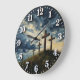 Jesus Calvary Sunset Impasto Large Clock
